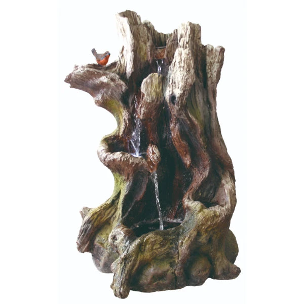 the willow spills water feature would be a natural unique feature in any garden, it ismade to replicate the natural tree texture. The Willow Spills has the water gently flowing from the top of the stump, passing the bird perched, observing the water flowing from pool to pool. These pools are lit by LED lights which will enhance the feature into the evening. it has been crafted to with a high attention to detail and would be an enchanted addtion to any garden or patio area.