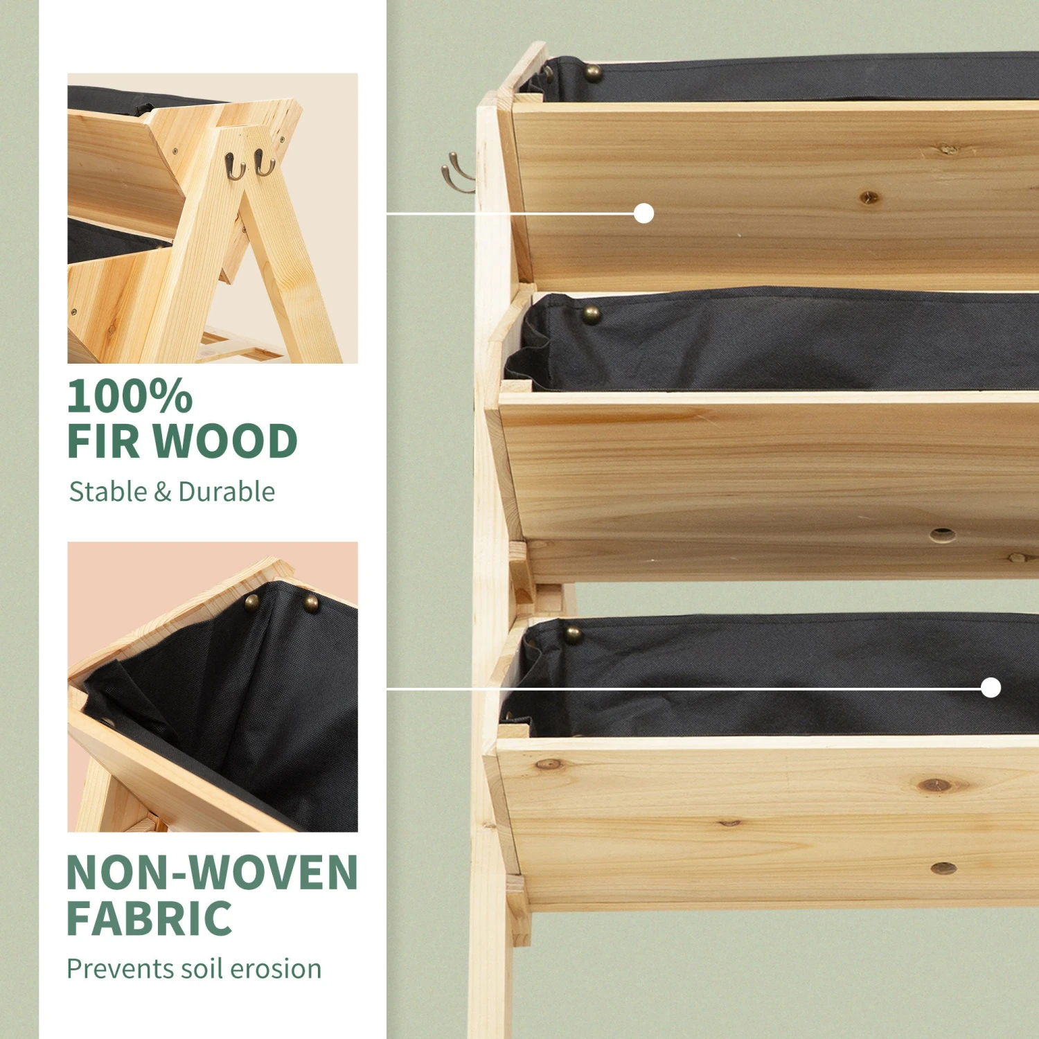 This 3 tier garden bed from Outsunny can be a good choice for those who like planting flowers or vegetables. 3 layers of flower stand provides ample space to plant, ideal for backyard and garden. Made with high quality fir wood for stability and durability. Non-woven fabric in the planting box for preventing soil erosion and holes on the bottom of flower stand for the outflow of excess water. You can place your tools on the clapboard or hang them on the hooks of the side. Let this practical plant bed dress up your garden!