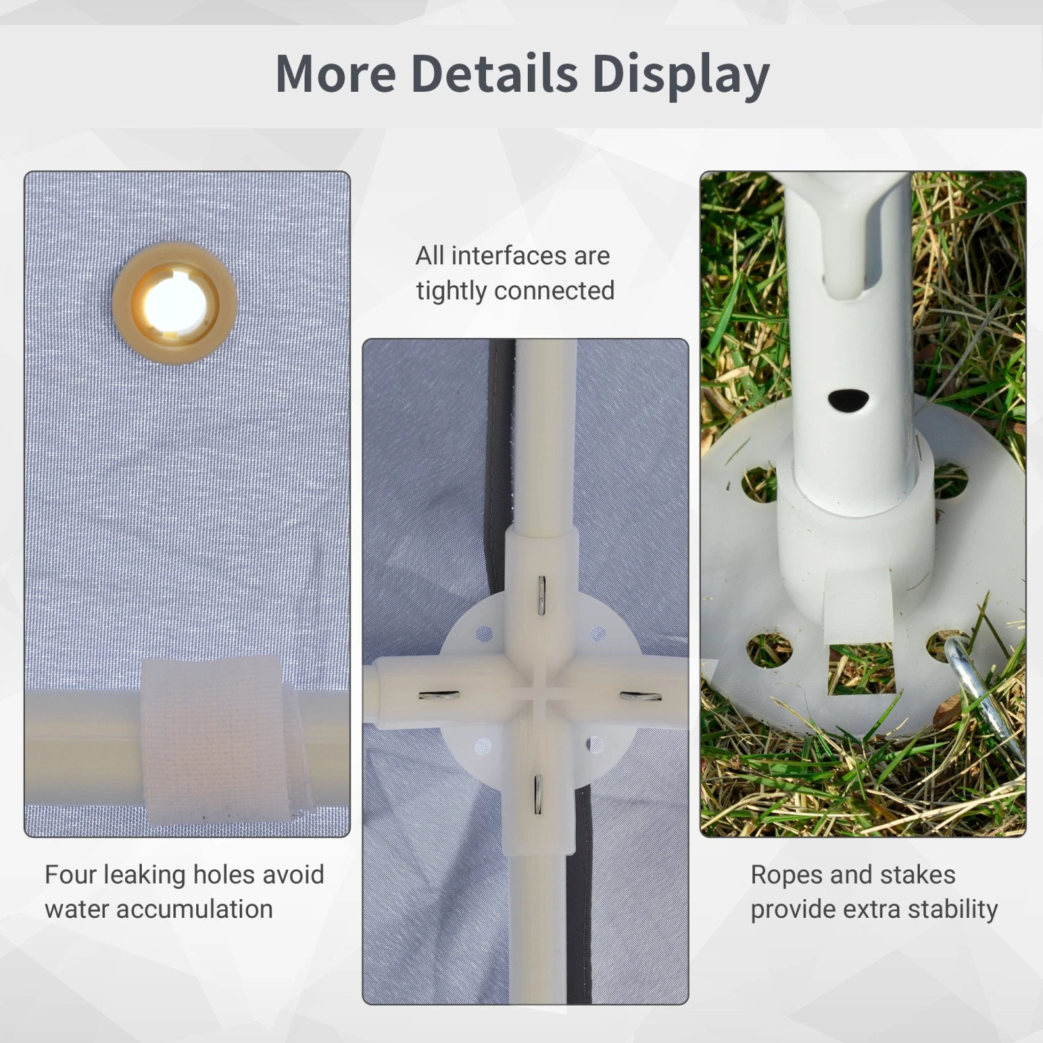 Create the perfect shelter spot outside with this gazebo with sides from Outsunny. It features a powder-coated steel frame for support and strength, with a 160/㎡ canopy top for protection against medium rain, sunlight and UV rays and two middle zipped mesh doors, providing easy access in and out and protection against mosquitoes and bugs. With eight stakes and four guy ropes included, you can confident that this small marquee will keep steady and still, no matter the occasion.