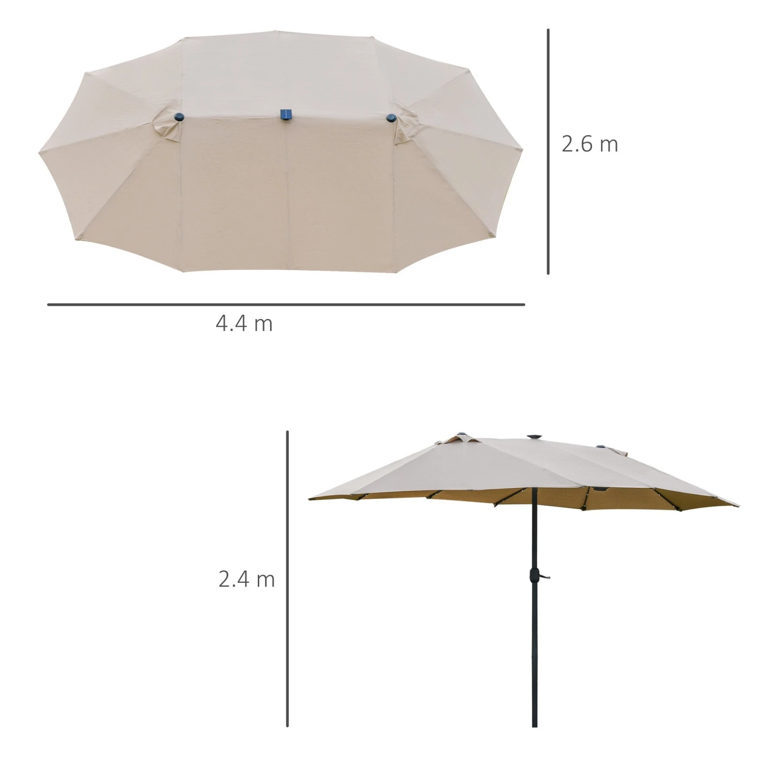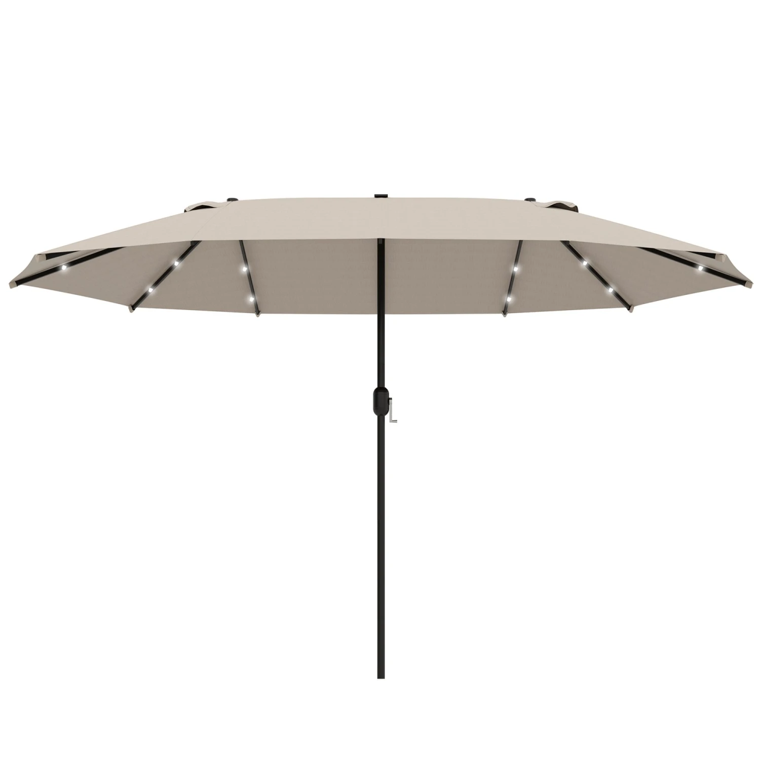 It’s time for your garden to shine with this double-sided parasol from Outsunny. A stylish design, it features 36 lights on the frame ribs to light up your outdoor seating when dark. They are solar powered so no electricity is required. The large polyester canopy creates plenty of shade, protecting you from direct sunlight and heat. Using a crank mechanism for effortless opening and closing, the large canopy can provide more sunshade. If you’ve been searching for a new way to change your garden, then this is the answer. Matching base: Outsunny sku 84D-089.