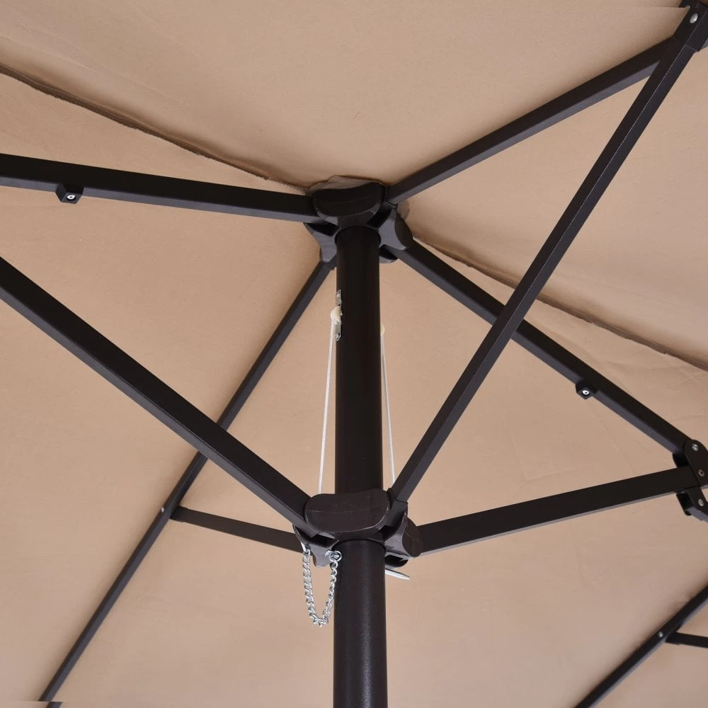 - Double canopy design garden umbrella covering a 4.6M diameter area