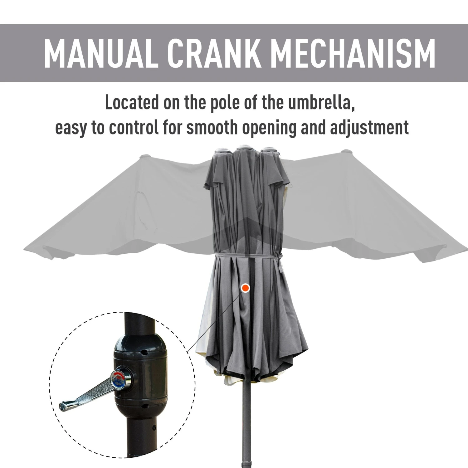 - Crank lift for easy opening and closing of balcony parasol