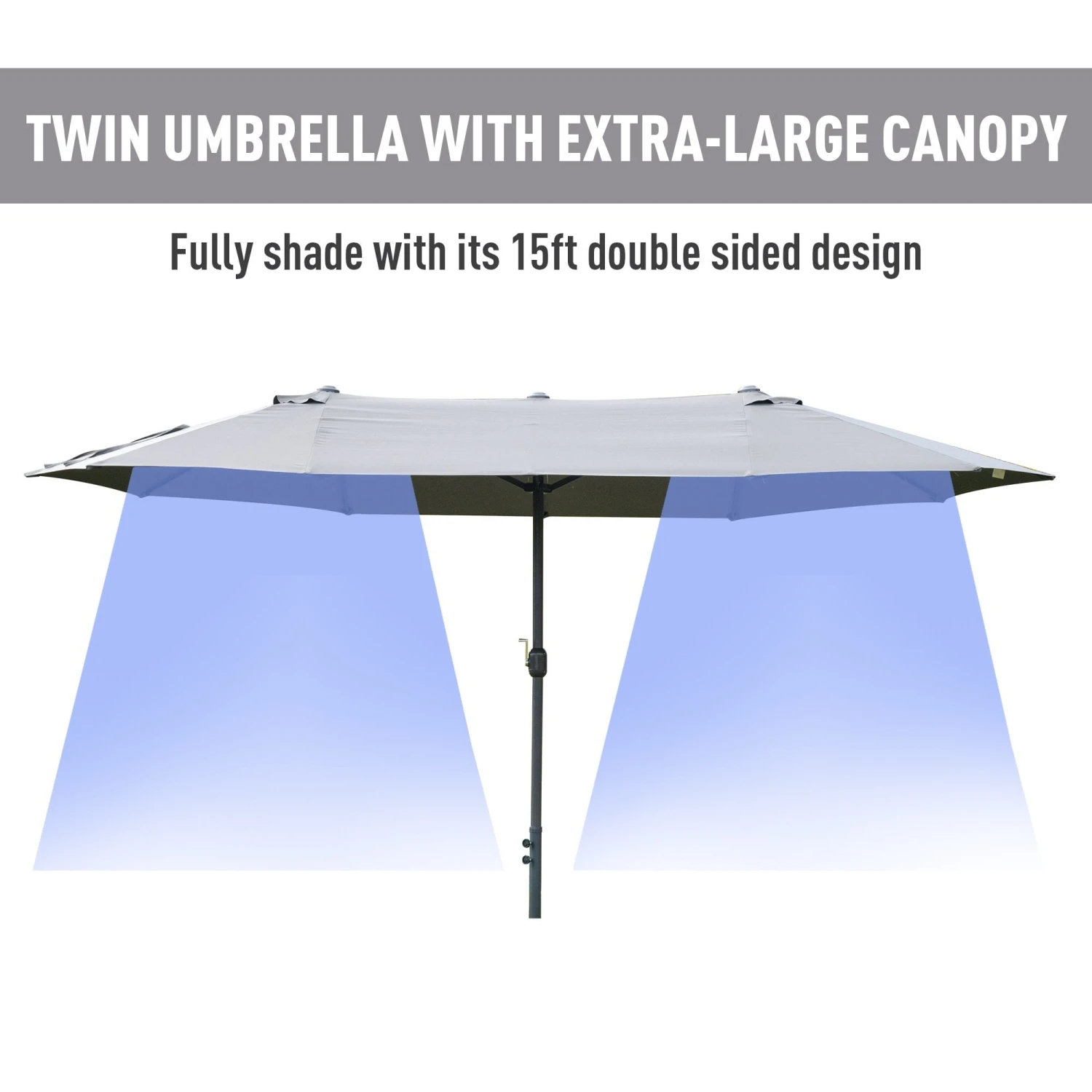 - Double-sided parasol design garden umbrella covering a 4.6M diameter area
