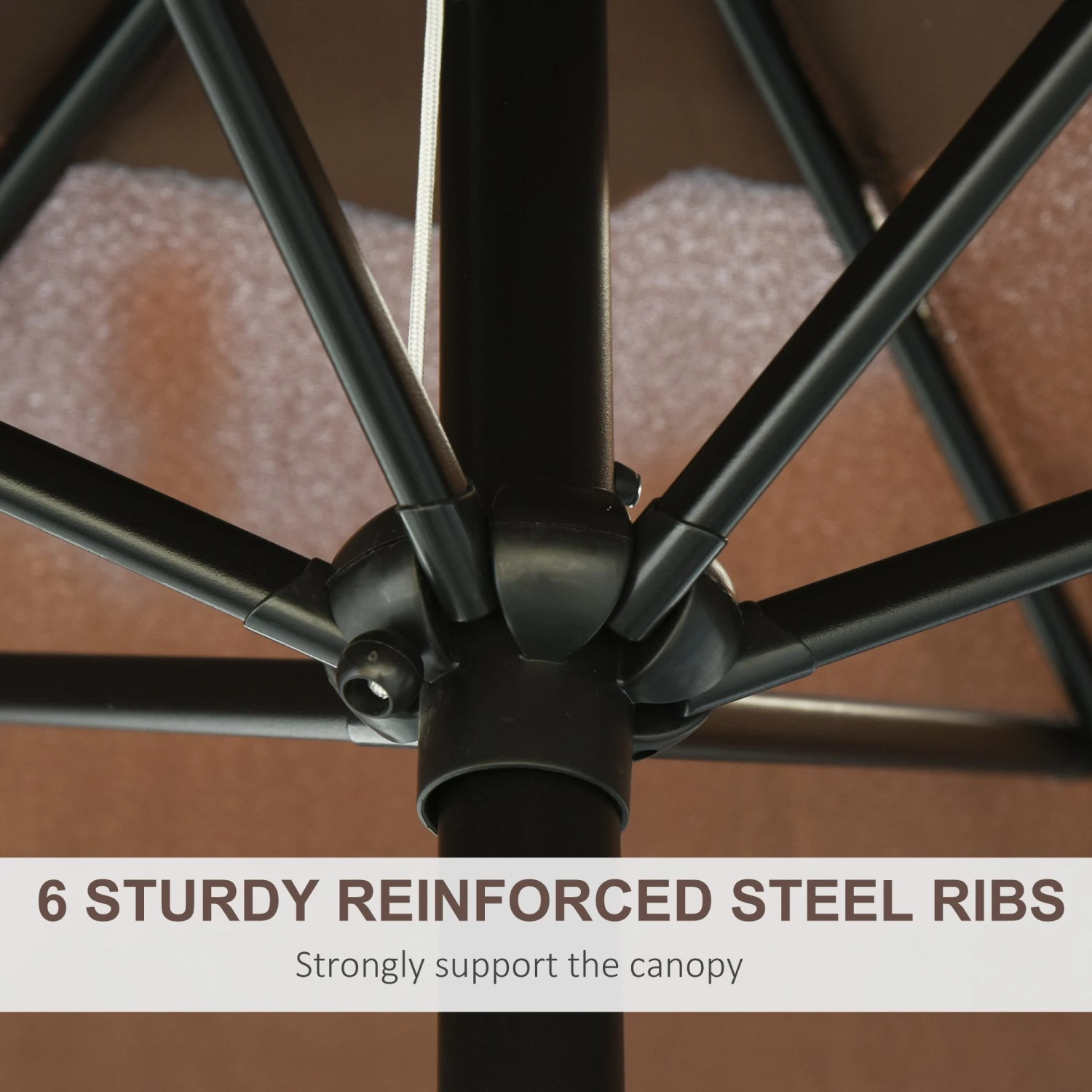 The Outsunny patio umbrella is an ideal choice to enjoy shade in sunny days, that can tilt for better protection. The umbrella is constructed with metal frame and the shade is made of polyester fabric. Featuring classic colour and sleek lines, it is designed to maximize the shade capability. Suitable for patio, garden, and can be used with existing garden furniture. The metal structure and 180g polyester fabric gives optimum support and long-lasting features.