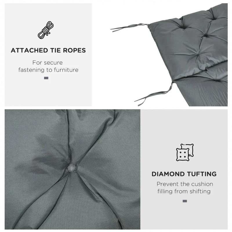 This replacement cushion for outdoor furniture, from Outsunny, is ideal for metal or wooden pieces. It provides extra comfort to your existing seating. A soft fabric cover is water and stain resistant. Easy to spot clean (can not be machine washed!) Filled with cotton for comfort. Completed with tie fastenings to fix securely in place.