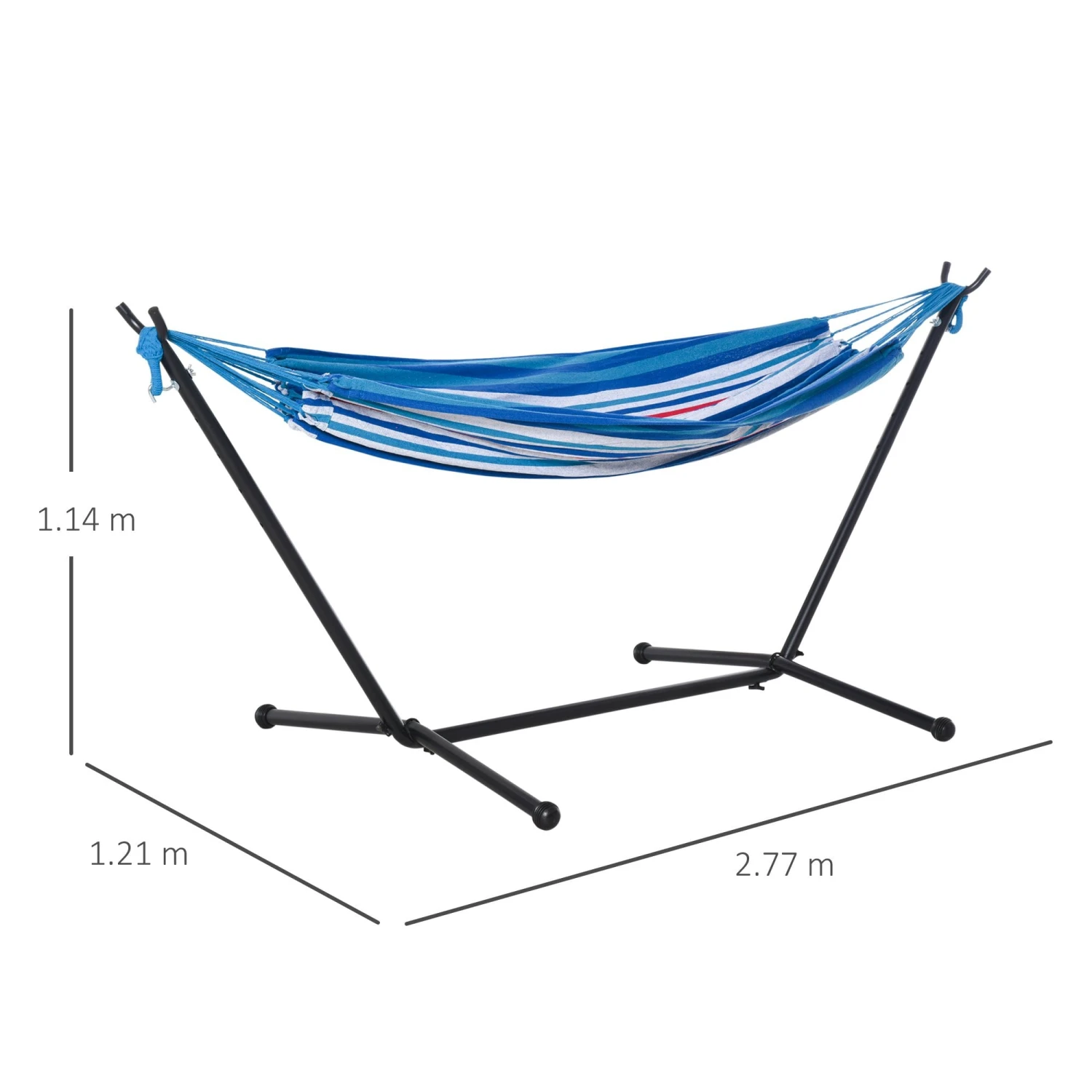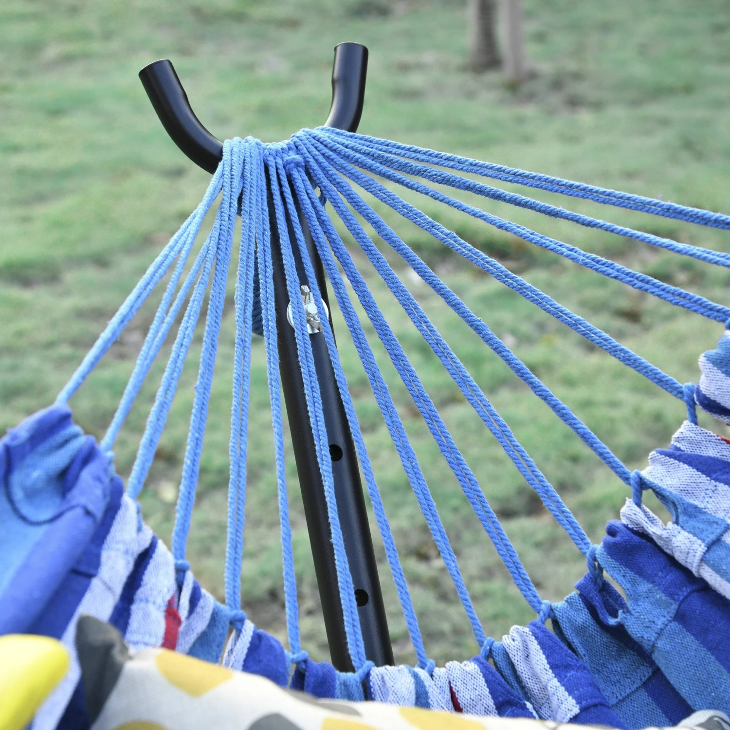 This Outsunny hammock bed with modern shape and multicolour stripe design, can be an ideal addition to your patio, yard or garden. No more searching for the perfect tree to hang your hammock, this practical hammock bed supported by a freestanding frame. Adjustable height and portable design bring more convenience for using. With this hammock, you can take comfortable naps on your porch, under a tree or by the pool for hours of relaxation.