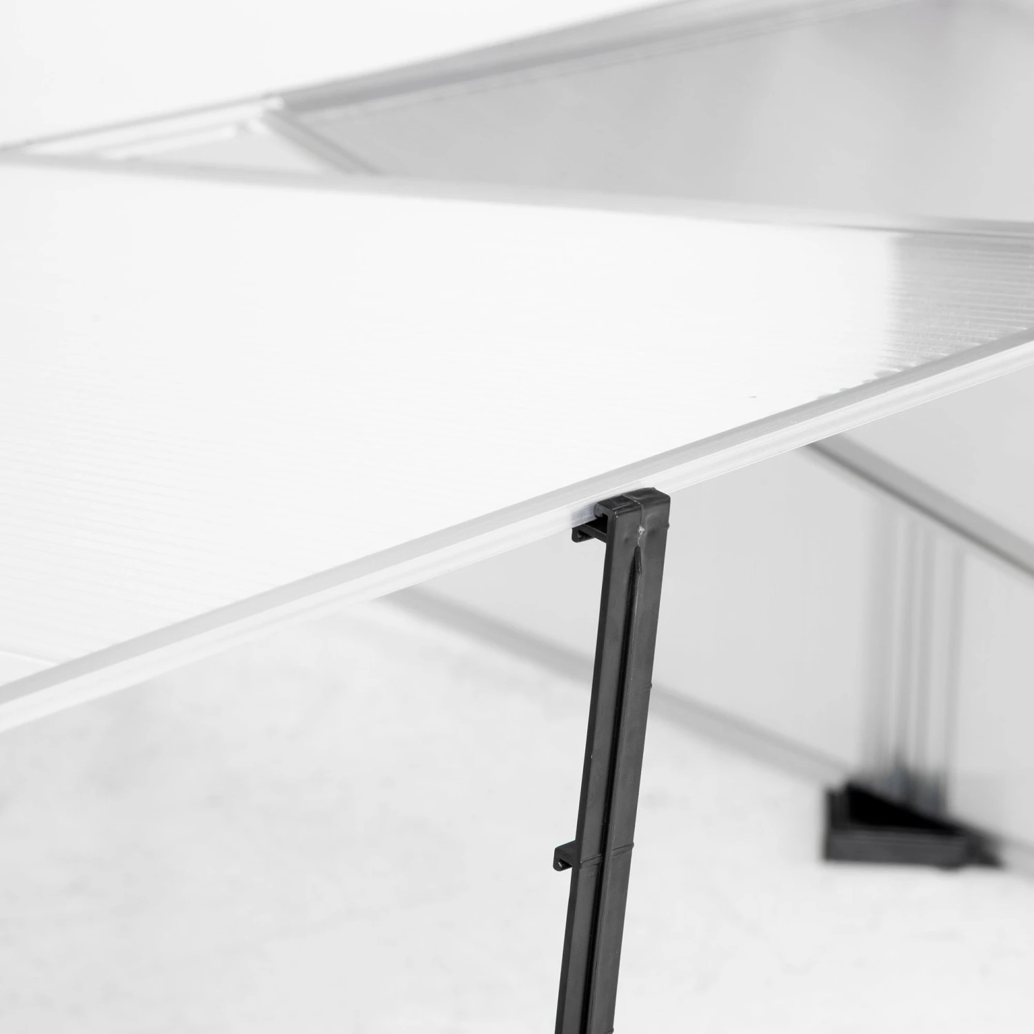 - Clear polycarbonate panels allow maximum light transmission while retaining heat