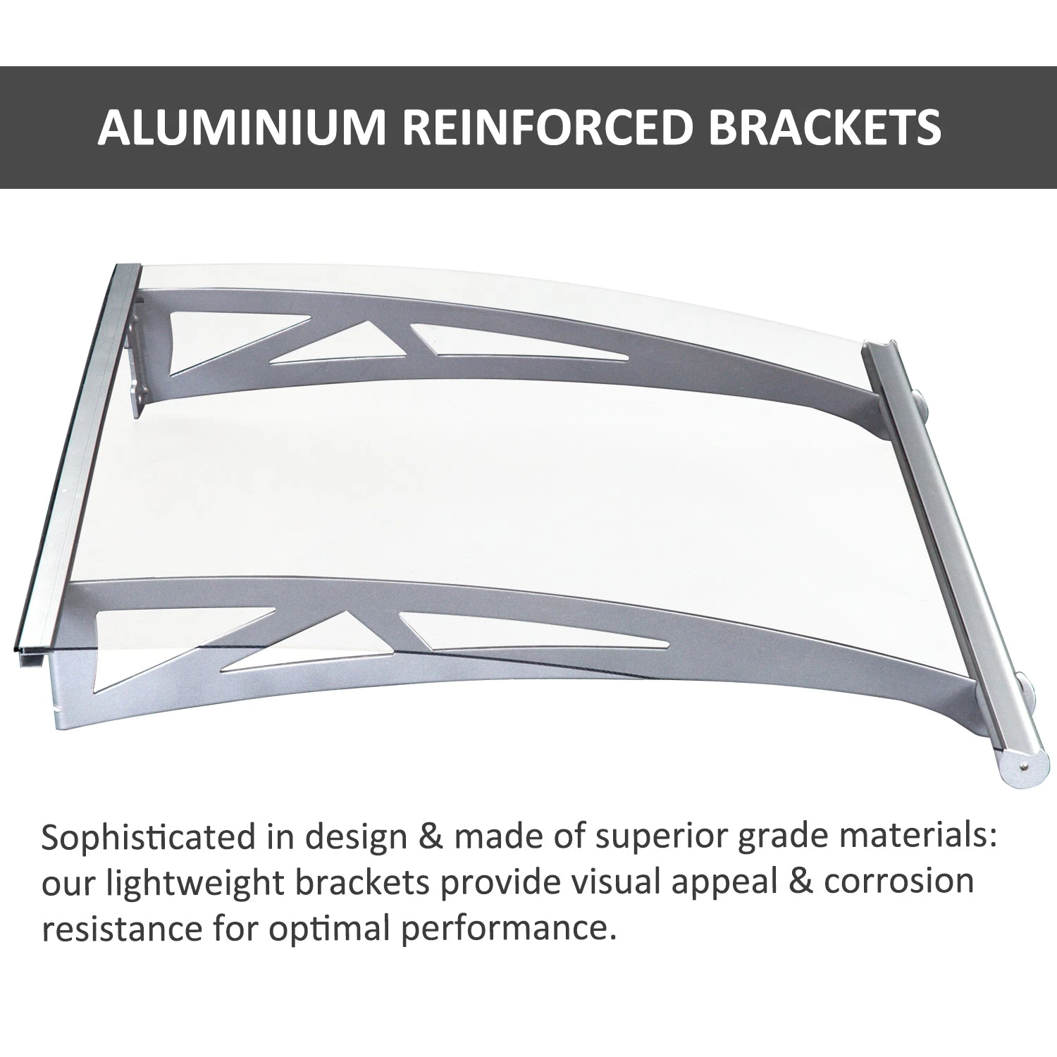 Outsunny’s door canopy offers stylish protection from UV and weather elements. Its durable poly-carbonate sheet and strong frame resist corrosion, perfect for both homes and businesses. Easily modify the clear panel to fit your needs. All mounting hardware included.