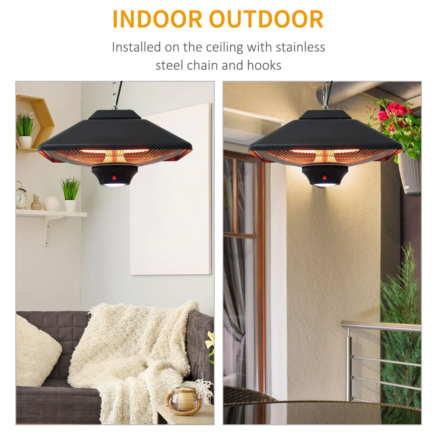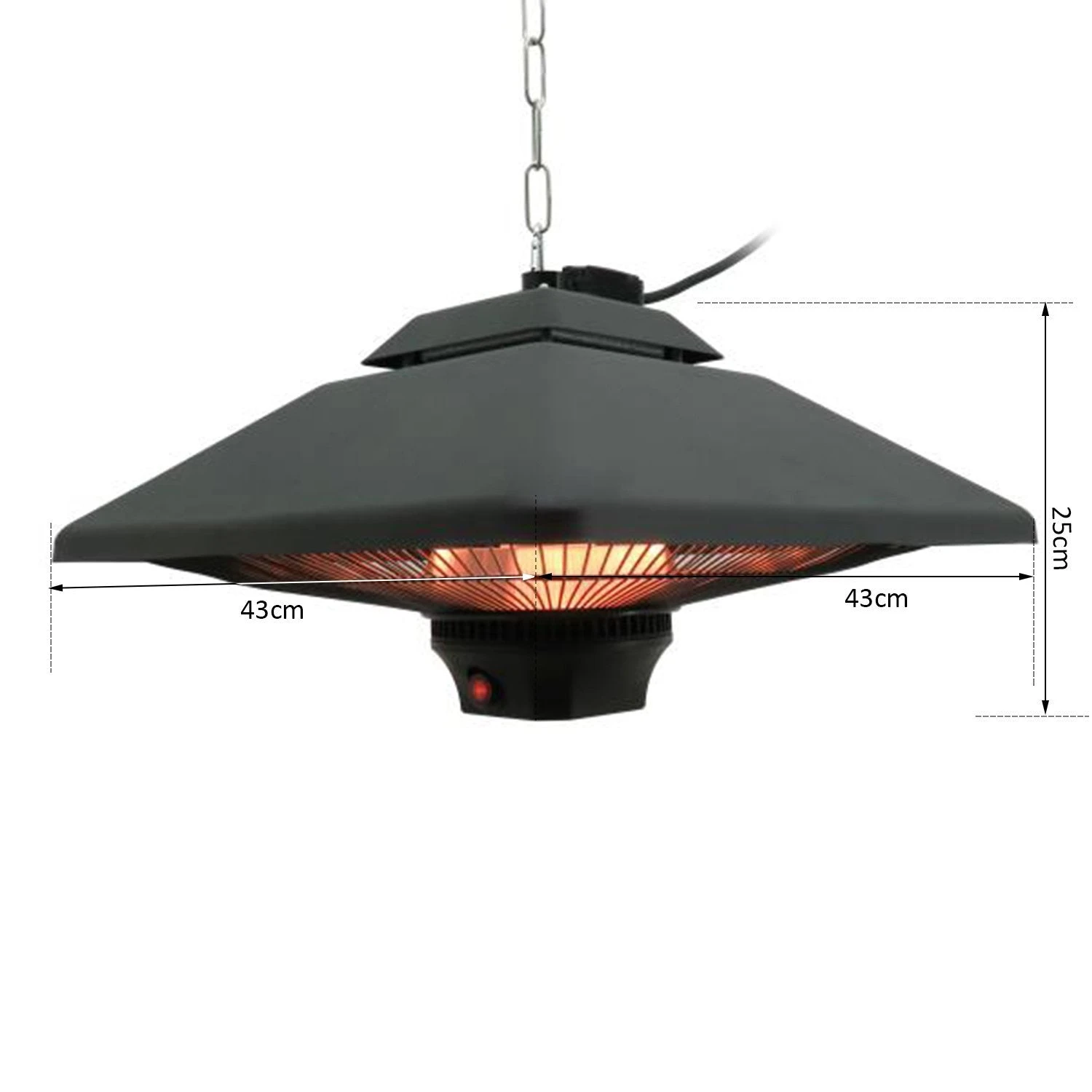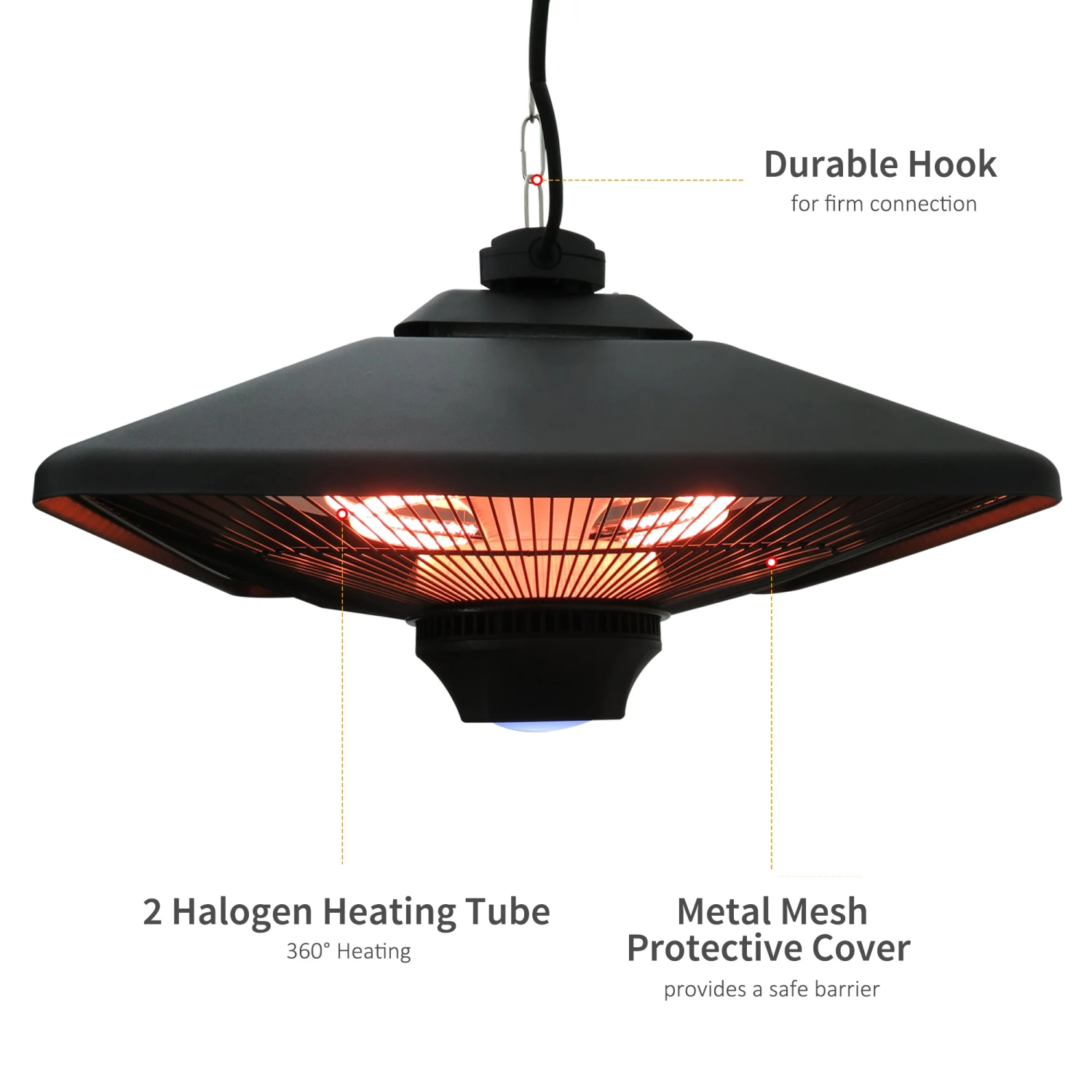 This Outsunny Hanging halogen heater is a great addition to your outdoor living space. It has a 2 in 1 function of a heater and a LED lamp to illuminate the area right underneath it. Comes complete with chains and hooks, enabling heater for gazebo to be adjusted in height if required. Great to have during the cooler summer evenings and during winter to enjoy your garden or patio.