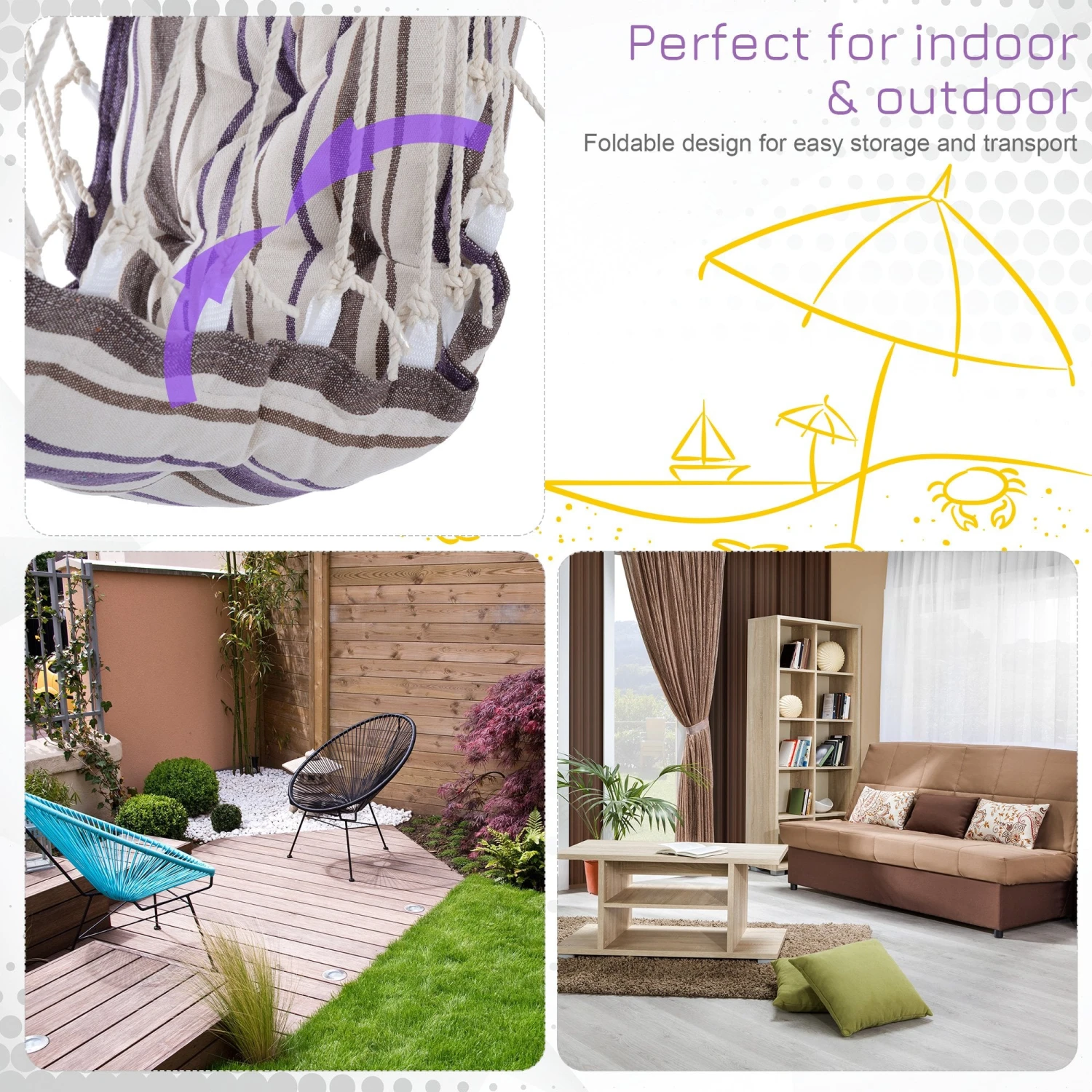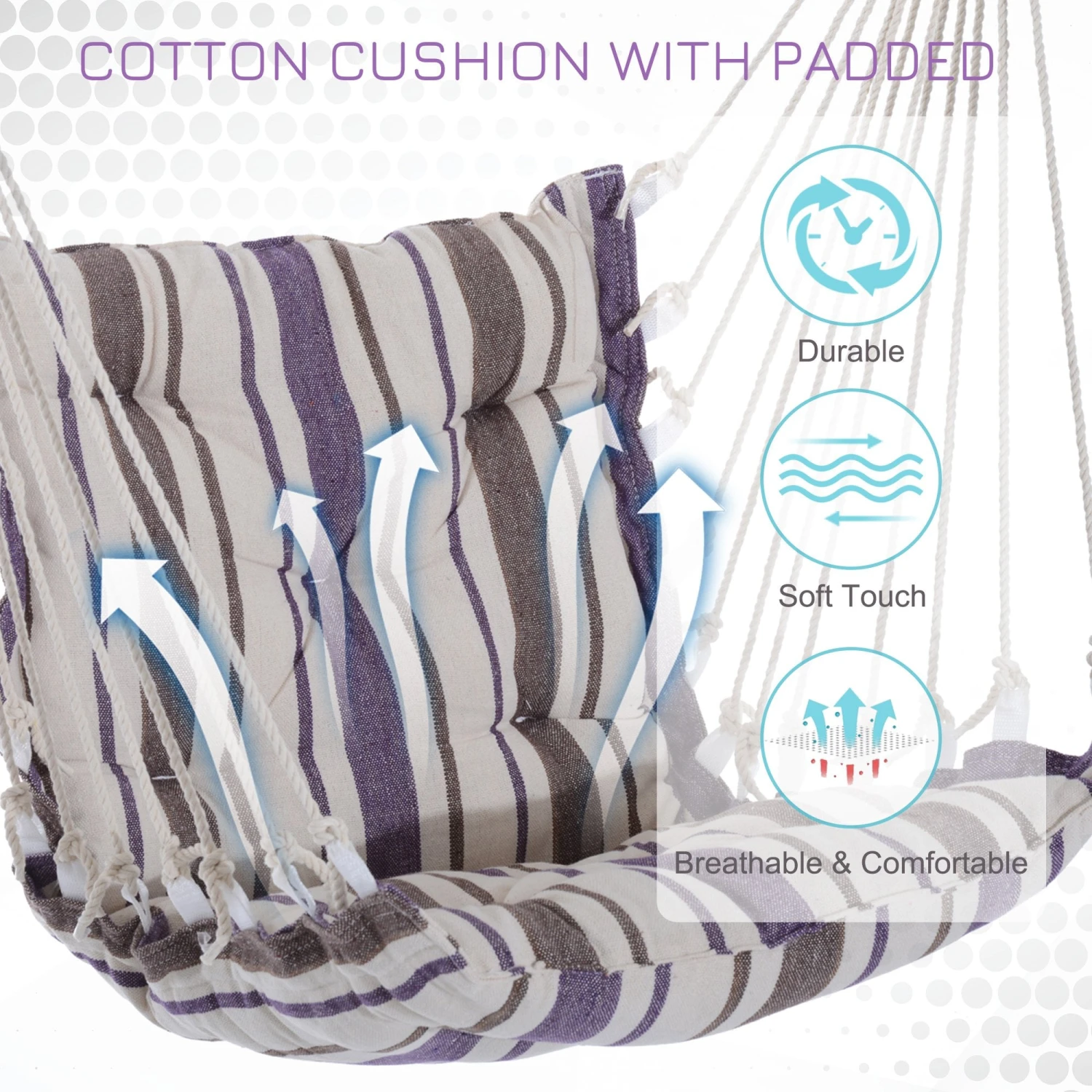 Spend your lazy day with Outsunny’s swing chair! This comfortable hanging chair in vibrant color offers you great relaxation and makes an ideal addition to any outdoor vacation, such as camping, beach or any mountain trips. It comes with the firm cotton rope and solid hardwood which can hold up to 105kg. The thick padded seat and back support allow the extra comfort in your seating experience. Stylish and functional, this swing chair will surely be your companion in your leisure time!