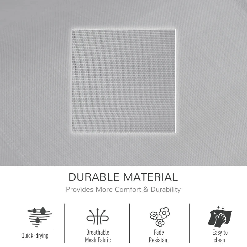 This outdoor rocking chair from Outsunny is a great way to relax outdoors. The curved frame has been made with your body comfort in mind, hugging to the contour of its shape. The seat is wrapped in mesh fabric which holds yours body in place, with a removable top pillow for head and neck comfort. Our patio rocking chair is finished with a removable side pocket, keeping everything you need next to you and rubber pads on the metal frame for protection.