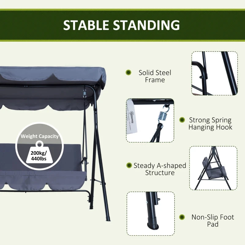 This Outsunny garden swing is the ultimate for relaxation in the comfort. Spacious in size to seat up to three people, the chair provides plenty of room to relax with friends or grab extra room for yourself. Perfect for everyday use in your garden and outdoors, with an adjustable angle overhead canopy to shield you below from sun glare, UV and light-medium showers. A must-have for those looking to liven up their garden just in time for Spring, Summer and beyond.