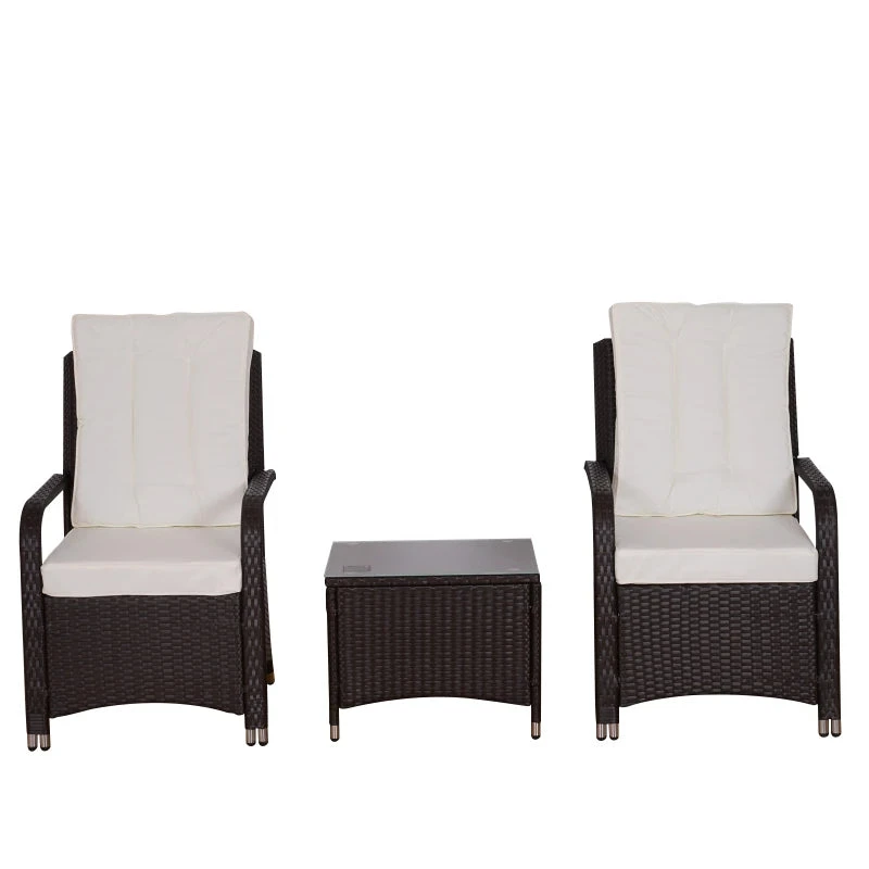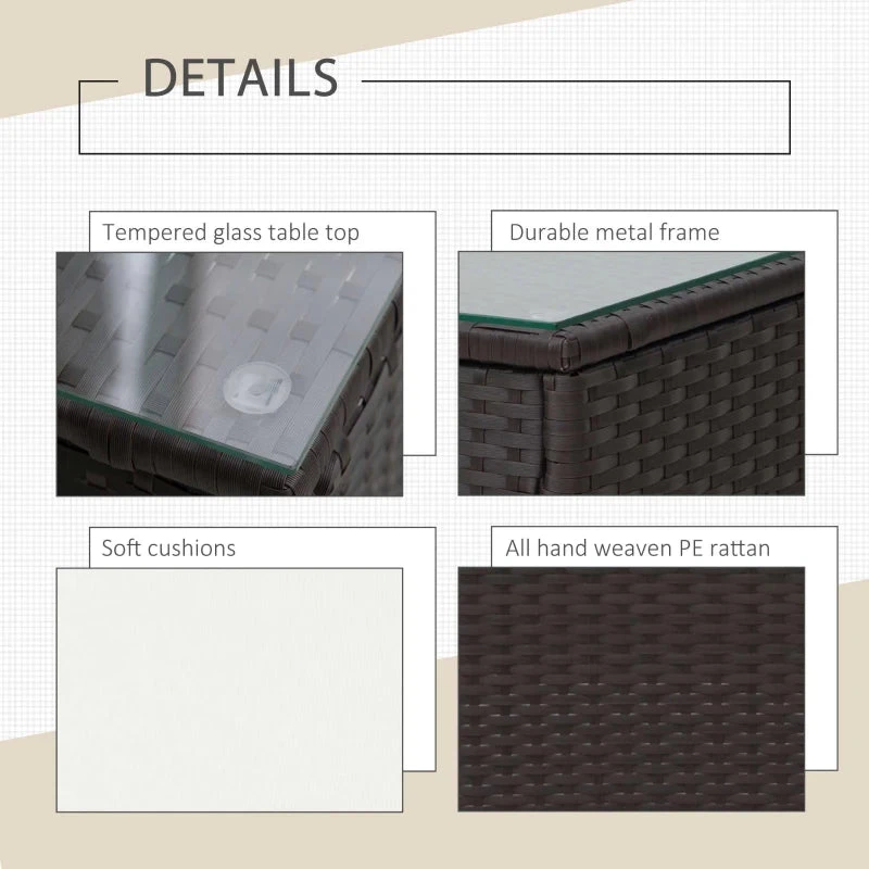 This outdoor bistro set made of PE Rattan is an ideal choice for your garden, patio or balcony. Combined with an steel frame structure and covered with rattan, this set is the optimal set to have. Comes with two seats with cushions and a table with a glass top to place drinks and magazines. The stylish modern design can fit into any style of your home and garden.