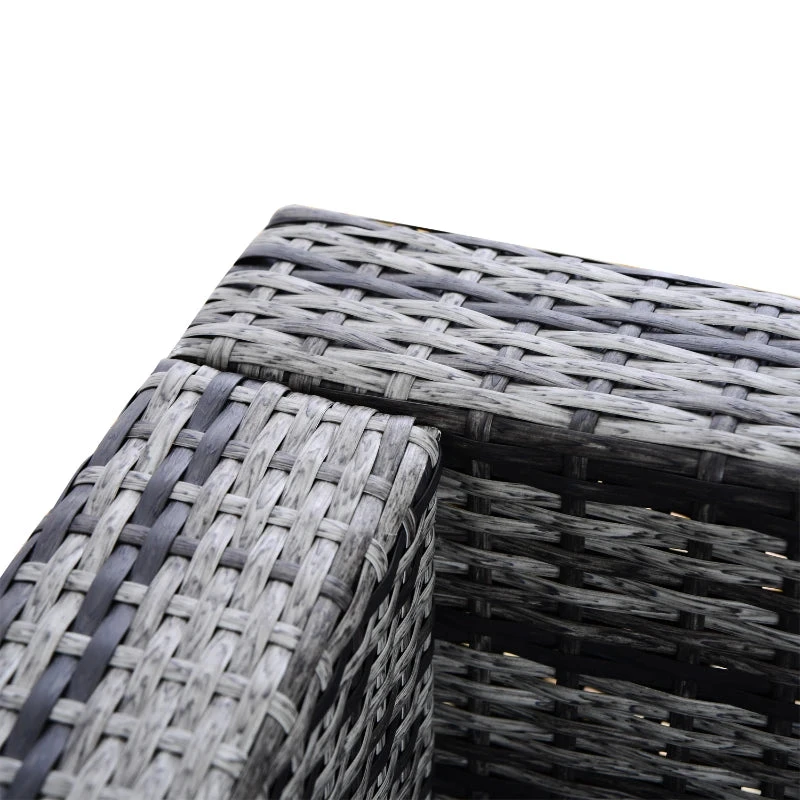 This Outsunny rattan furniture set allows you to rest and relax outdoors. Rust-resistant steel frames make strong pieces, with plastic wicker for a beautiful and durable rattan look. Seat and back cushions for comfort. Tempered glass tabletop for a sleek look – easy to maintain.