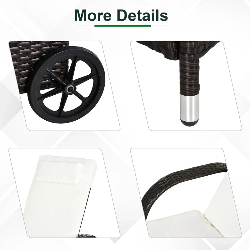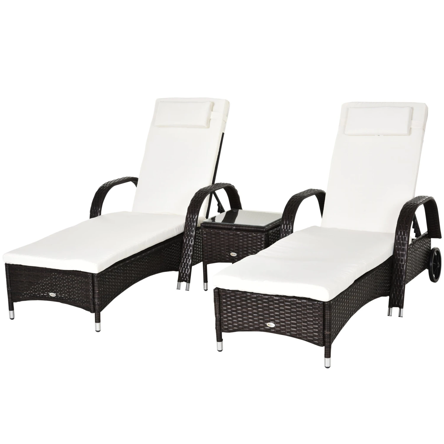 The rattan patio chaise lounge set from Outsunny comes complete with 2 loungers, 1 side table and cushions. The seat has 5 adjustable positions to give maximum relaxation and comfort. The side table also has a glass top to keep your drinks at easy reach, and the set can be used indoors and outdoors.