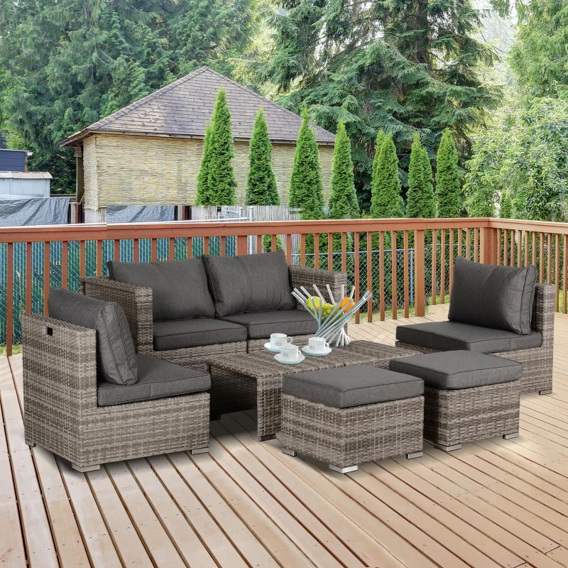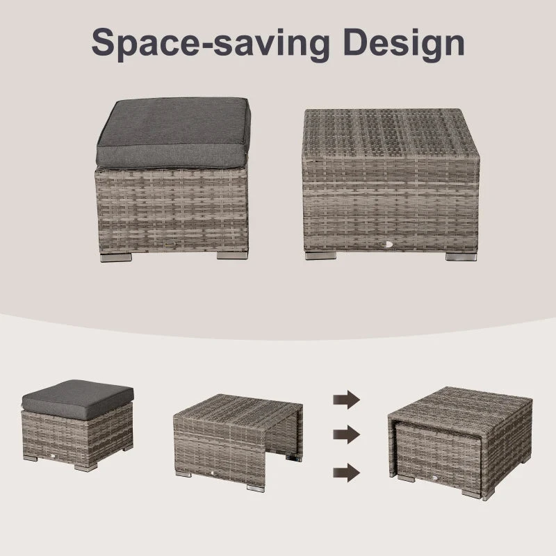 Take comfort to your garden and beyond with this eight-piece outdoor furniture from Outsunny. Using galvanised steel for the frame to ensure a strong and tough structure, each of the two single chairs, two corner chairs, two stools and two coffee tables are covered with PE wicker for long-tern use outdoors, with pieces but the table featuring heavily padded cushions for you to lounge comfortably. A fantastic blend of style, comfort and craftsmanship.