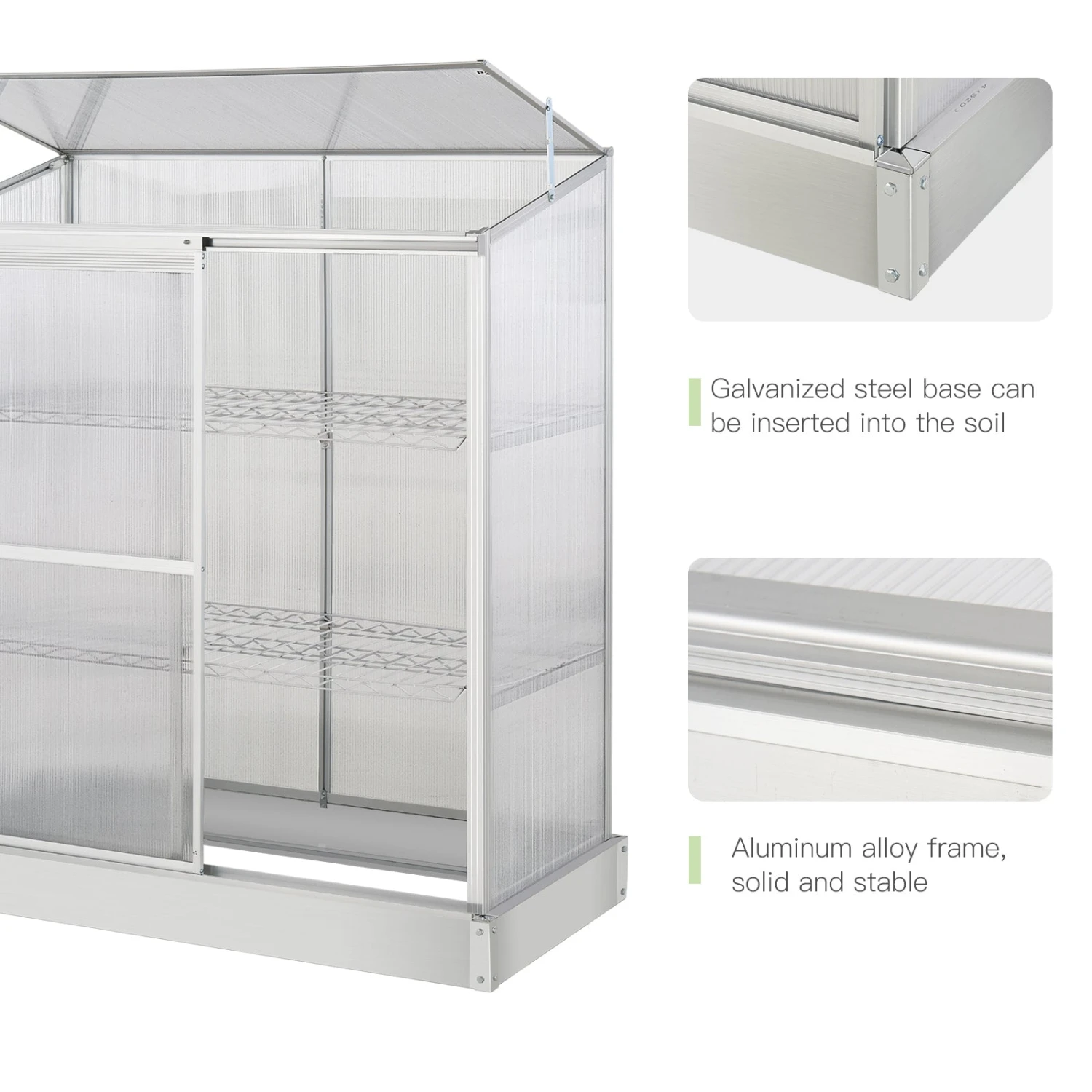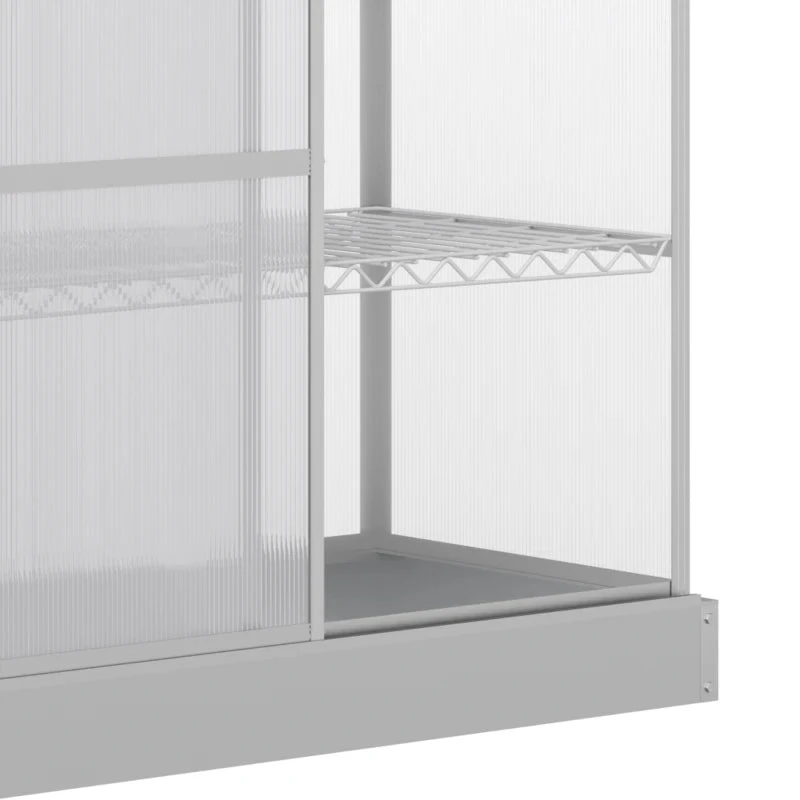 - Galvanized steel base keeps the aluminium greenhouse lean to in place