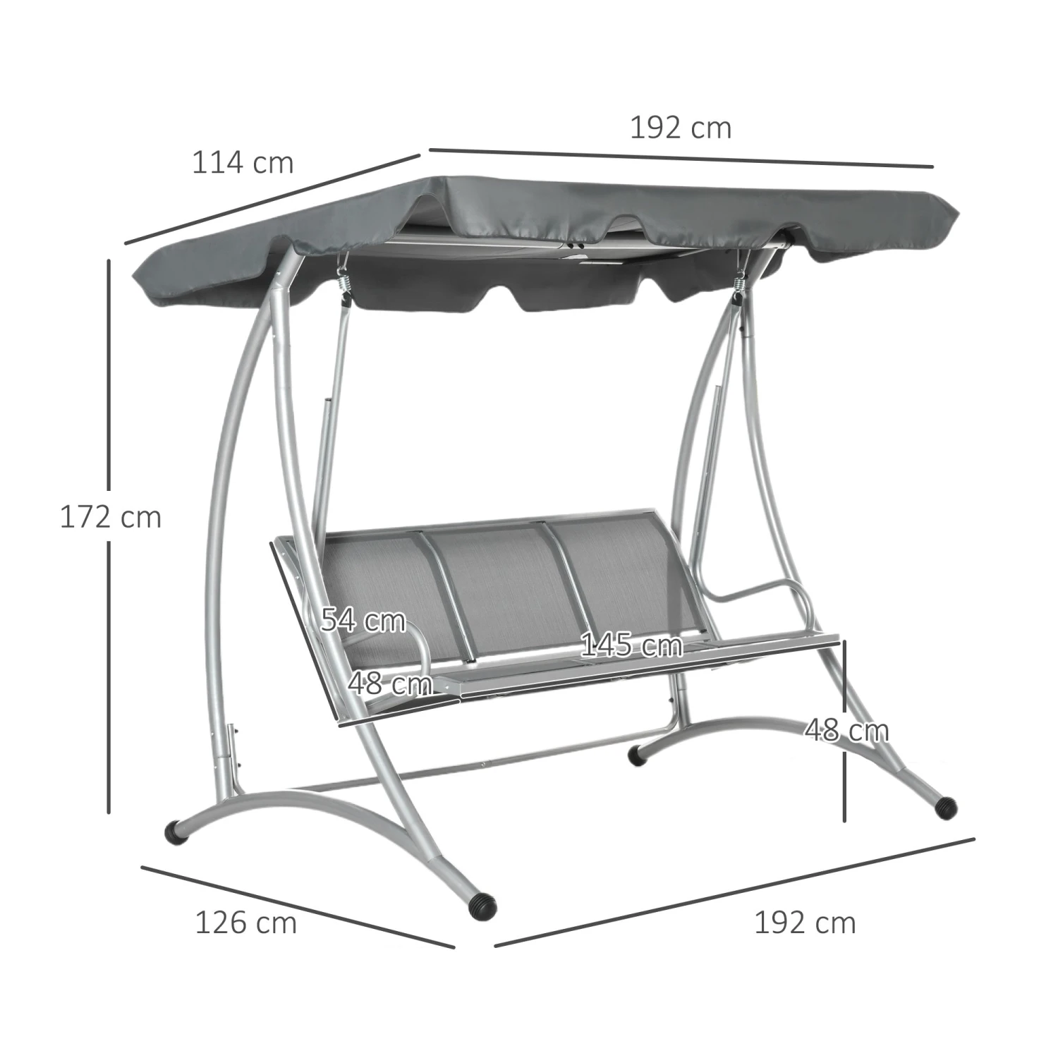The Outsunny outside swing for adults with adjustable canopy is equipped with three well-ventilated seats. This outside swing seating also provides proper sun protection with an adjustable canopy top. You can even remove it easily if you prefer to enjoy the sunshine with the breeze flowing through your hair. The outdoor porch swing’s durable steel frame supports up to 340kg for long-lasting use. Add our hanging chair with stand to your outdoor furniture collection!
