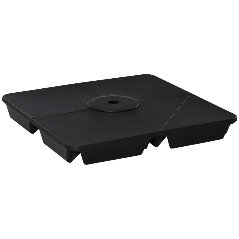 Ensure your cantilever parasol is always held firmly in place with this garden parasol base from Outsunny. Made from upgraded PP plastic, and comprised of four pieces that fit together easily. When empty, each piece is light to carry, allowing you to pick your perfect sunshade spot with ease. Whether you wish to use this for your garden, poolside, or patio, this is the parasol holder for you. Combine our cantilever parasol weights with a banana parasol and create your own oasis under shade.