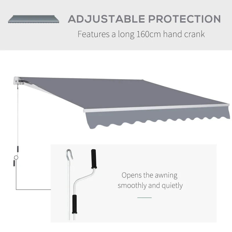With a thick sun-shielding canopy fixed on an aluminium frame, this 2.95 x 2.5m awning from Outsunny will give you all the shade you need this season. The manual design means you can set it up wherever needed – whether it’s above a door or window, and it easily mounts onto your chosen surface with all accessories included in the package. Finished with a crank handle for easy operation. It’s time to enjoy the beauty of outdoors more than ever before.
