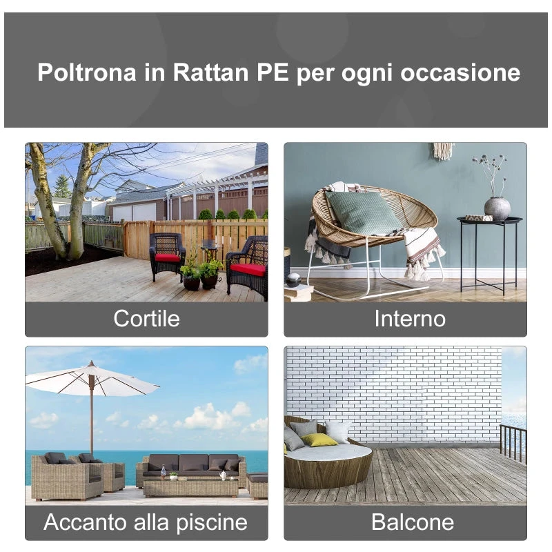 - Strong and durable metal frame, with PE rattan hand-woven all around for mild weather-resistance