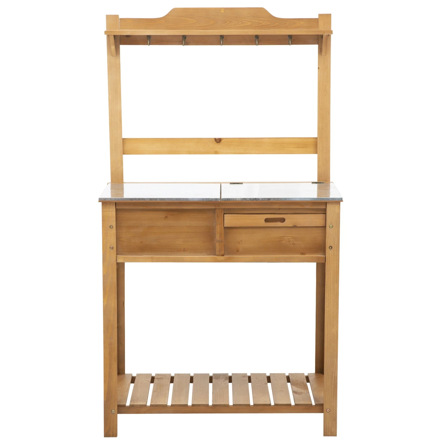 - TOUGH AND DURABLE: Solid fir wood structure for durability, with a rust-resistant galvanized metal surface. Suitable for outdoor use (keep protected in heavy weather conditions). EASY TO CLEAN: Its pull-out strainer helps you separate impurities. The galvanized potting table is easy to wipe clean and the sink plug is convenient for drainage.