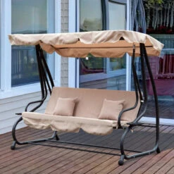 Outsunny 2-in-1 Garden Swing Chair – Light Brown
