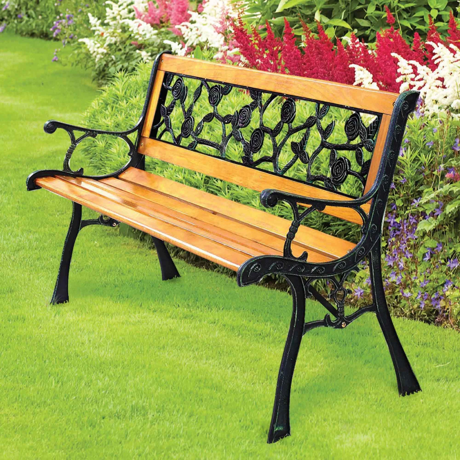 Made from quality wood, cast iron and plastic, the bench is airy and smooth. Featuring a slight curve to the seating area for added comfort, the hardwood bench provides both stylistic and functional benefits and is a long-lasting piece of garden furniture which can take pride of place for years to come.