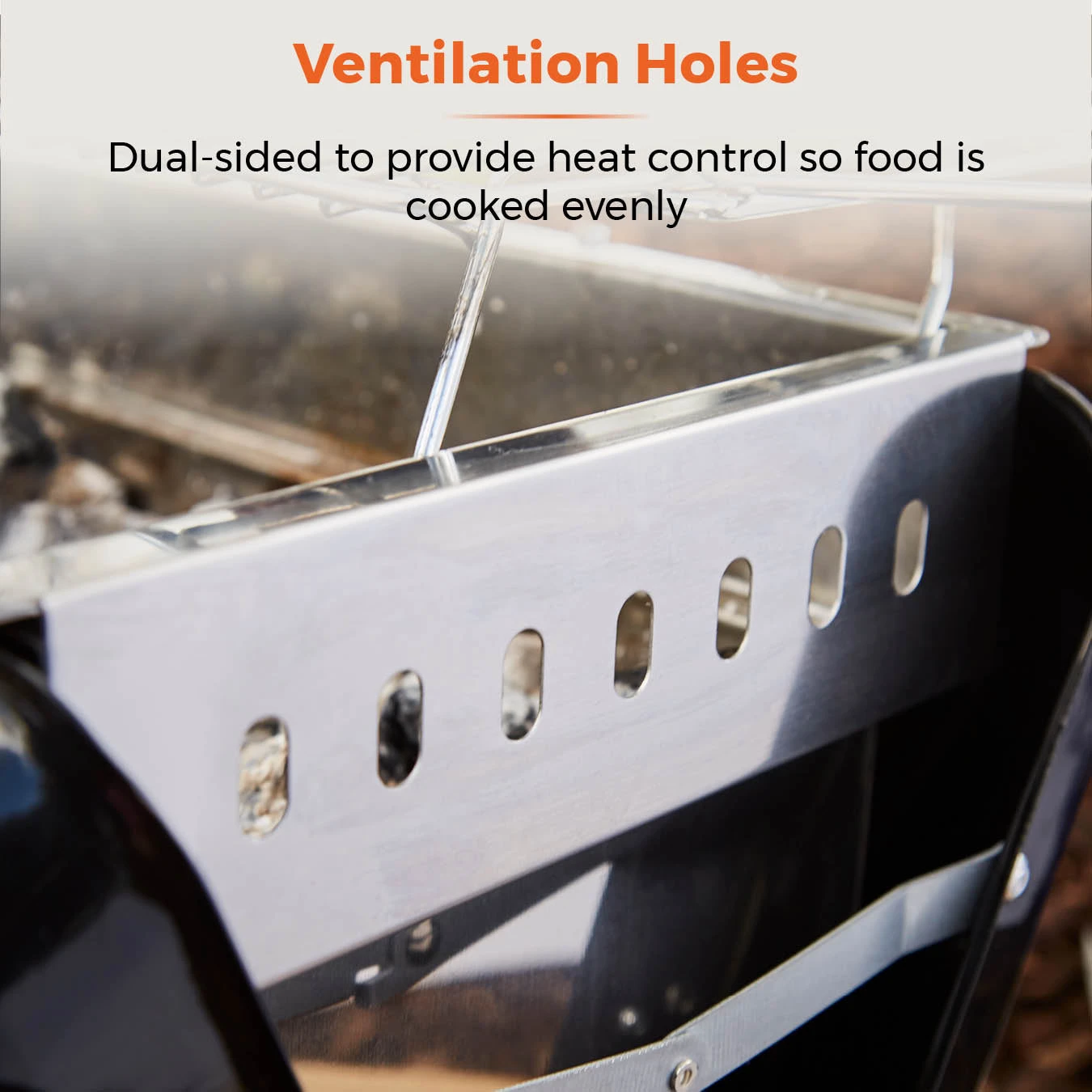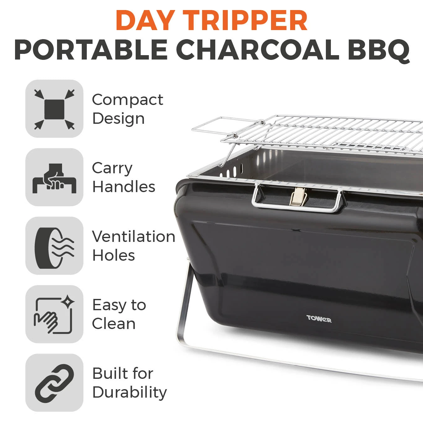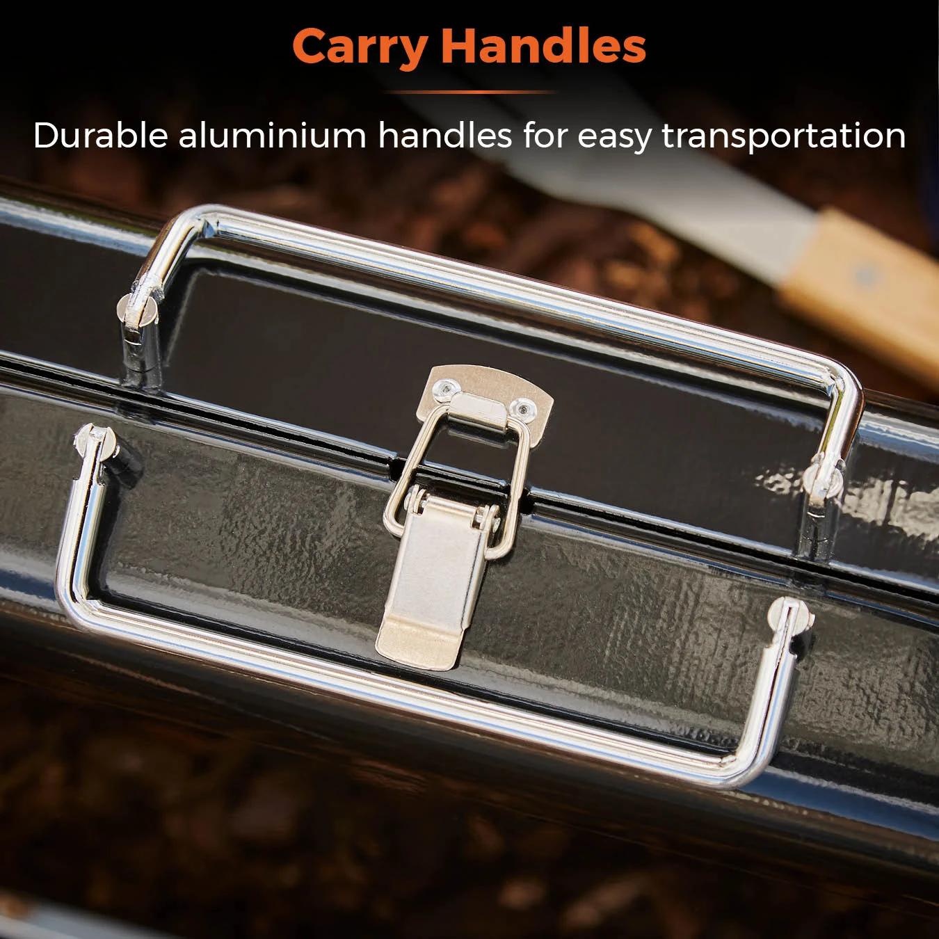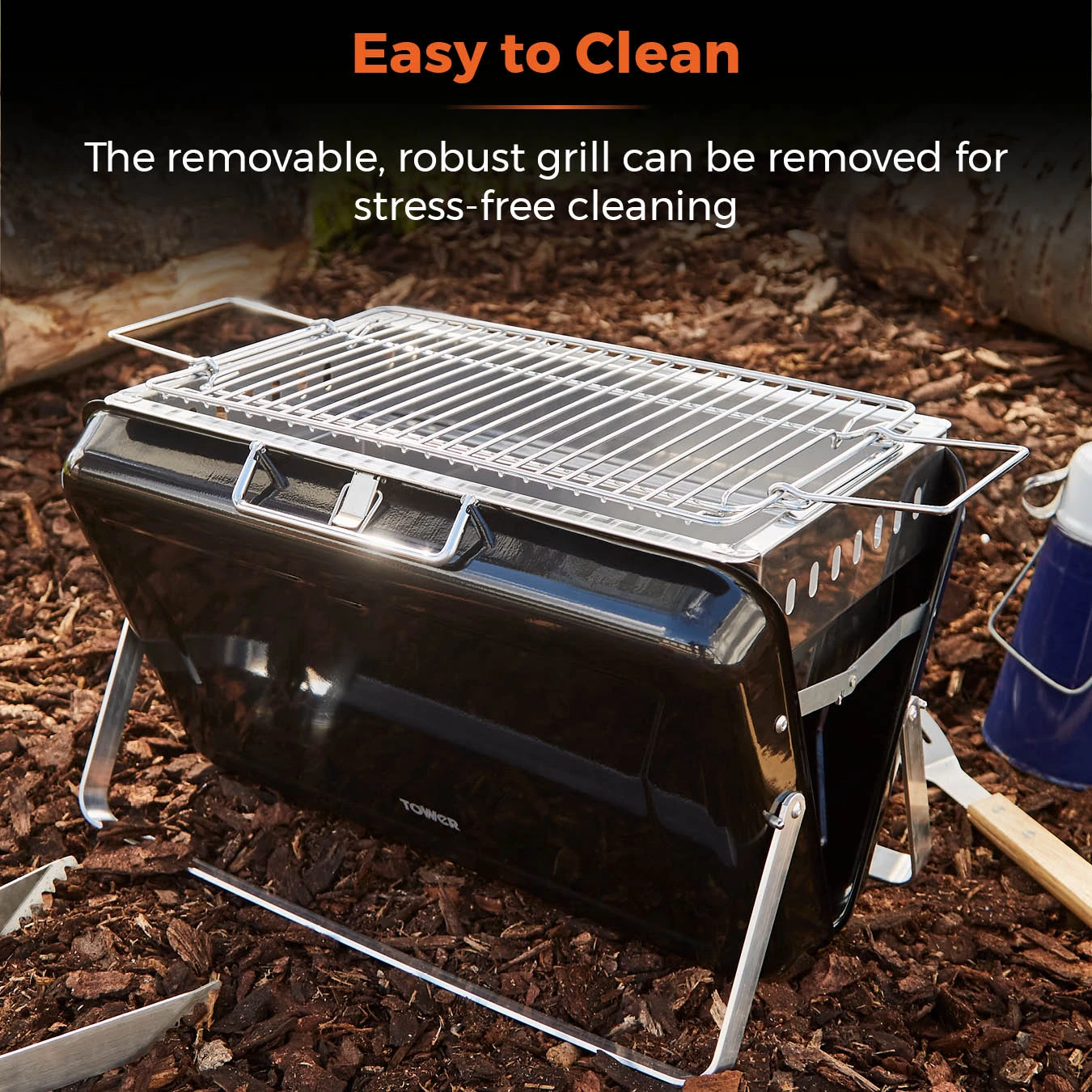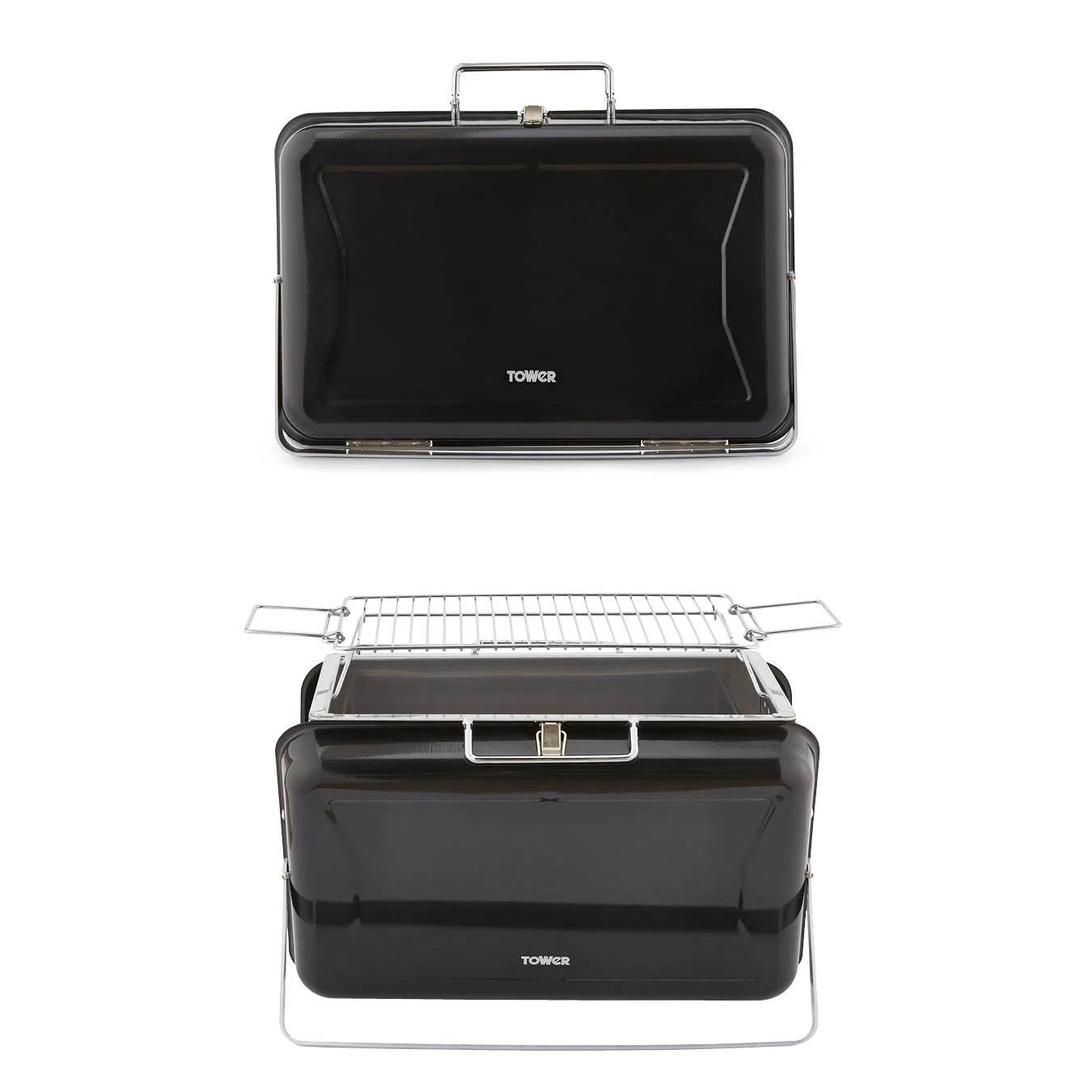 Host a barbecue for friends and family using this Tower Stealth portable briefcase BBQ. Dual ventilation holes let you take control of the heating output and get the best possible results when grilling your meats, poultry or other ingredients. Featuring a compact and lightweight design, you can conveniently store the grill away and take it on family camping/fishing trips or caravan holidays. An aluminium carry handle makes it easier to transport the barbecue grill. The robust high grade steel body provides long-lasting durability, making it perfect for those who love to entertain on a regular basis throughout the year. This easy to clean Tower briefcase BBQ comes with your standard 1 year warranty, along with an additional 2 years when you register the product online within 28 days of purchase.