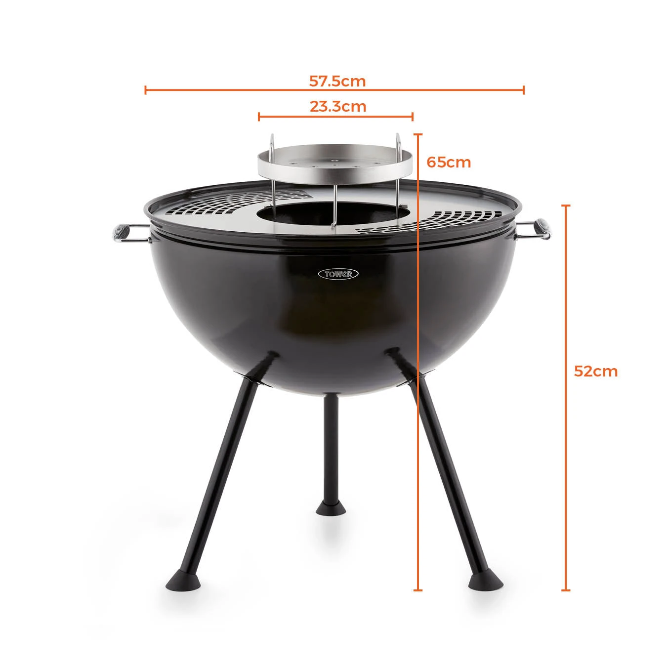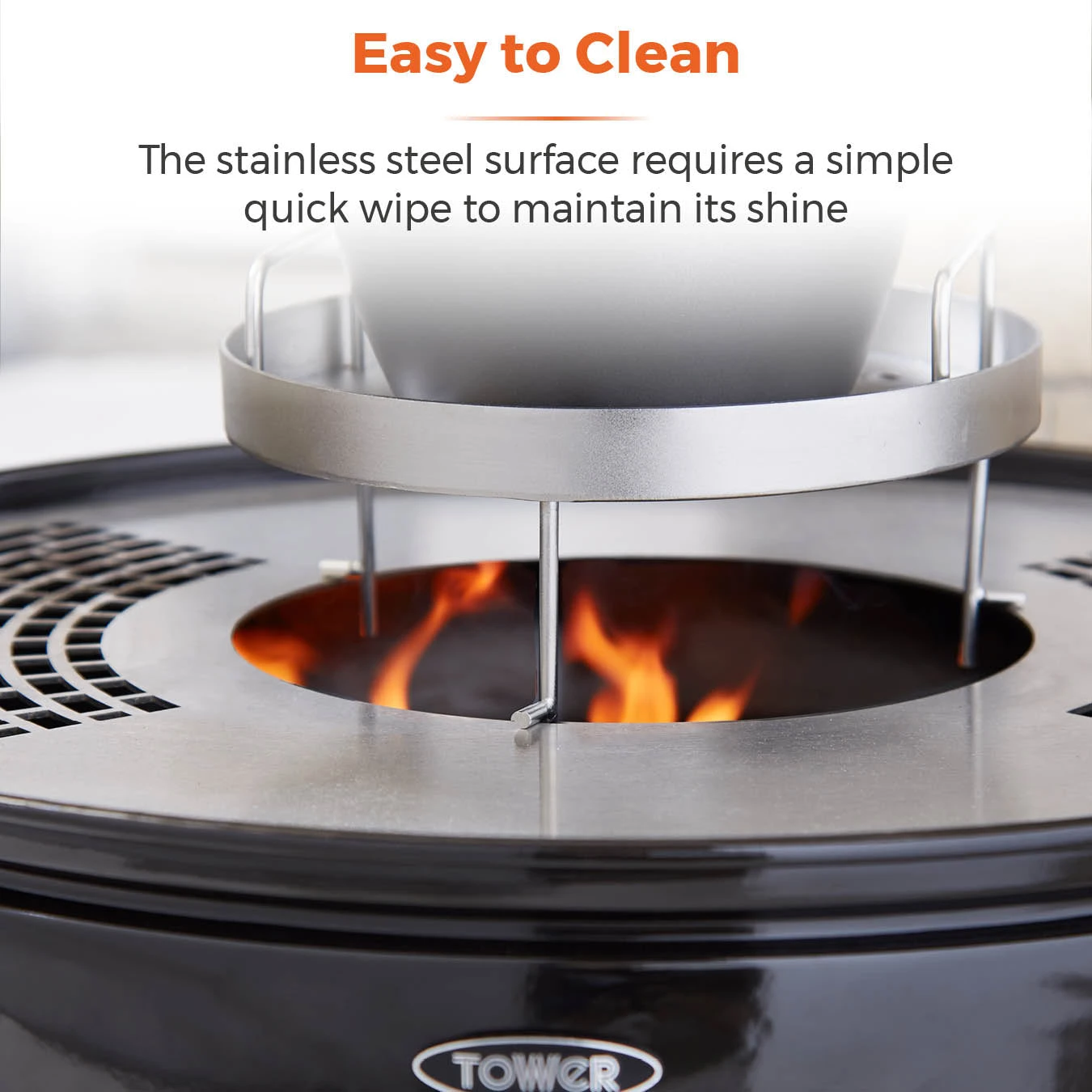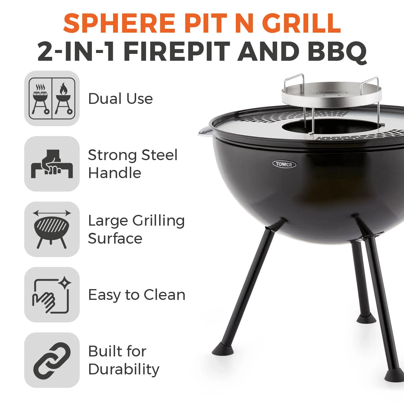 Combining visual appeal and practicality, this Tower Sphere Pit and Grill has everything you need to play host for family gatherings. The hygienic steel surface lets you cook a wide range of meats, poultry and other ingredients, which can be easily cleaned without risk of cross contamination. Featuring a robust stainless steel construction, this barbecue and fire pit is perfect for those who love to frequently host gatherings, providing you with long-lasting reliability and durability. The 360 degree access makes for more convenient use, while the straight and robust legs give you the necessary stability for various outdoor surfaces such as grass.